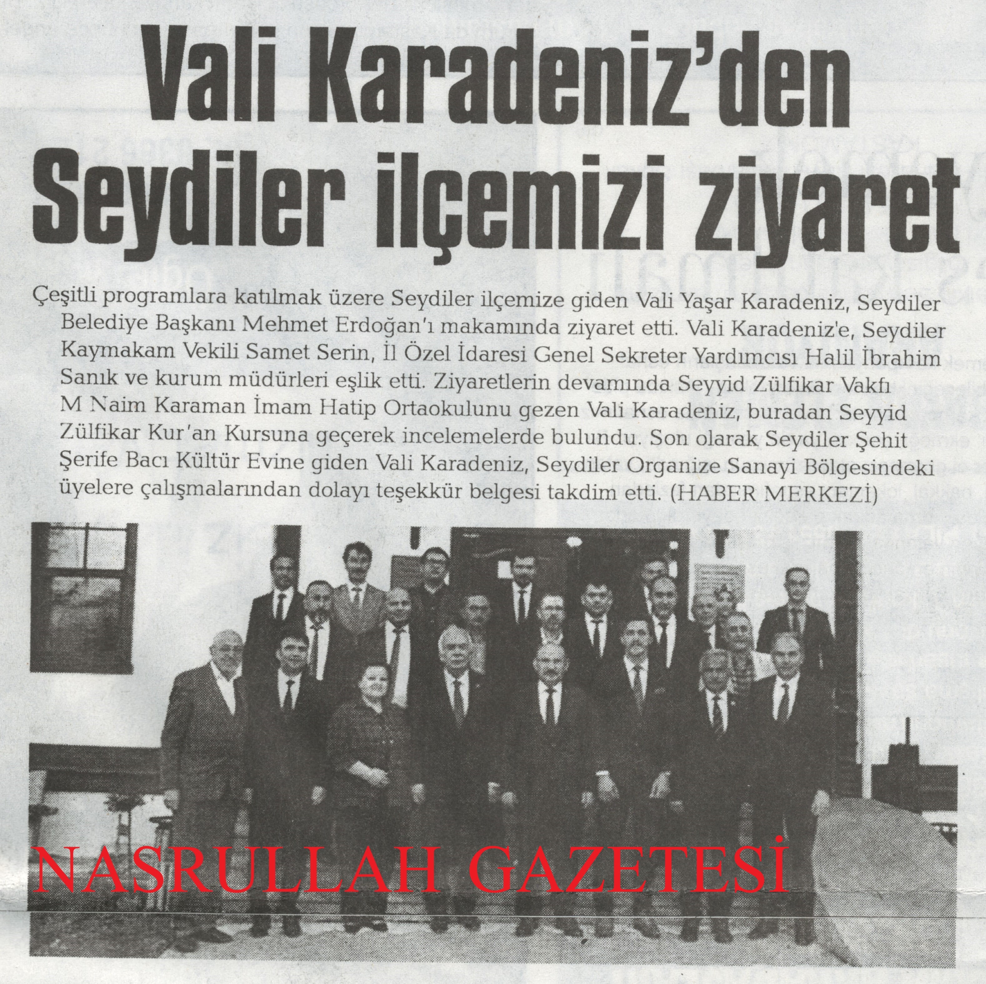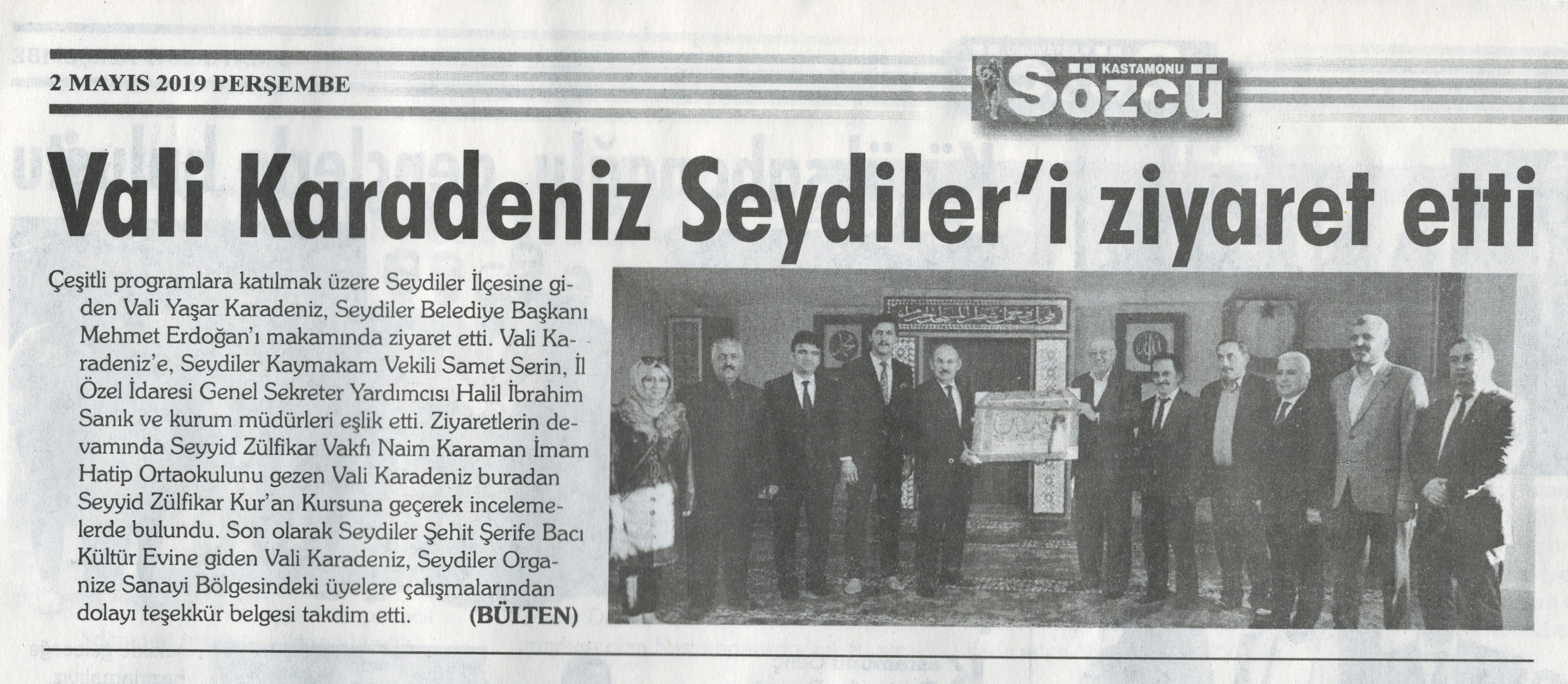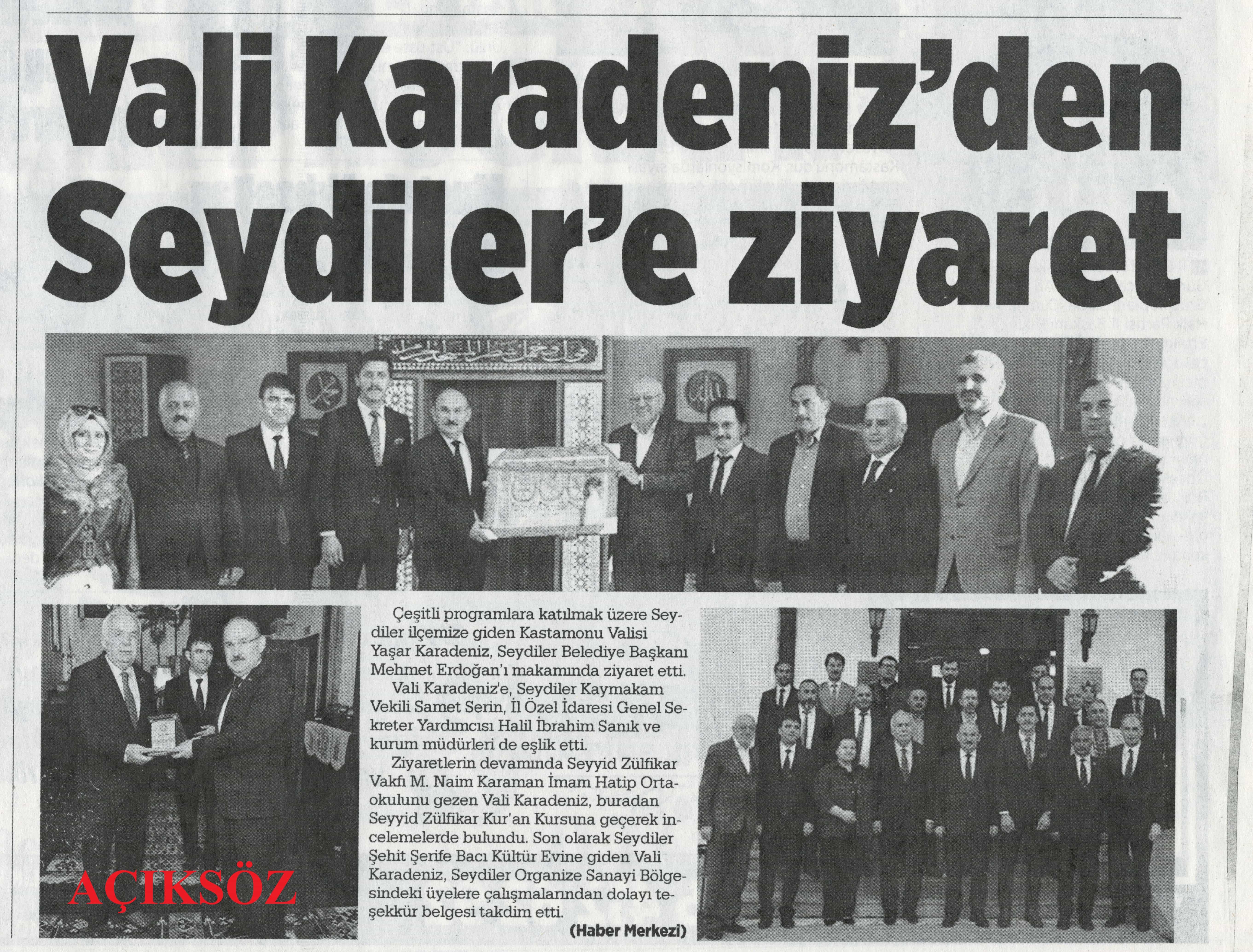Çeşitli programlara katılmak üzere Seydiler'e giden Vali Yaşar KARADENİZ, Seydiler Belediye Başkanı Mehmet ERDOĞAN'ı makamında ziyaret etti.